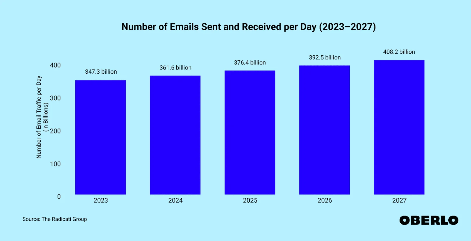 每天发送的邮件数量高达3000亿封。