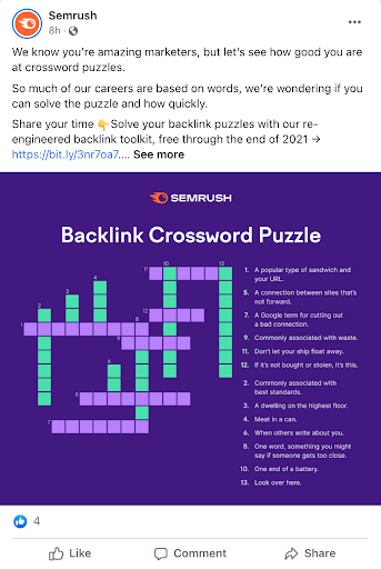 定期发布受众喜欢的内容组合,能让他们更愿意了解您的产品和服务。Facebook算法也会惩罚过度推销的品牌,更倾向于有意义且互动性强的内容。