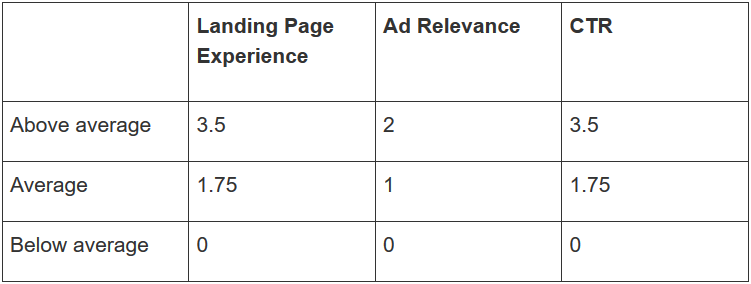 1 + 1.75(落地页) + 1.75(预期点击率) + 2(广告相关性) = 6.5 分