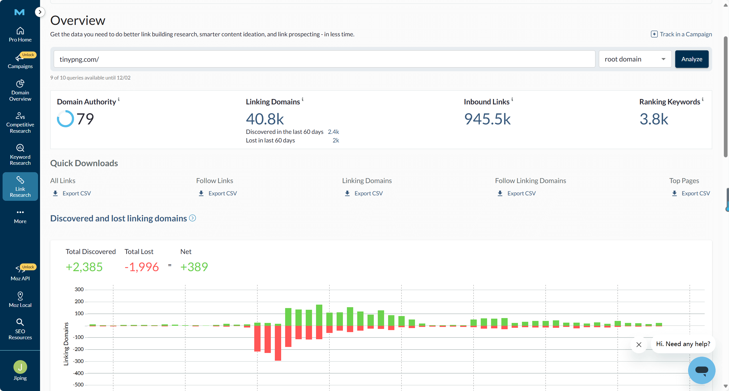 使用Moz免费的Link Explorer工具查询DA分数,Moz Link Explorer可以检测域名权重(DA)和链接健康状况。